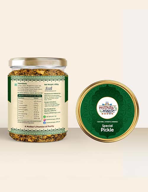 Special Achaar is crafted using handpicked ingredients and cold-pressed mustard oil, bringing you the bold, authentic flavors of traditional Indian kitchens. Prepared using time-honoured methods, it develops a rich, deep taste that reflects the essence of regional recipes. The natural pungency of mustard oil enhances both flavor and preservation, giving every bite a distinctive character. Made in small batches with care and no additives, it is a perfect accompaniment to everyday meals, adding a burst of tradition and taste to every plate.